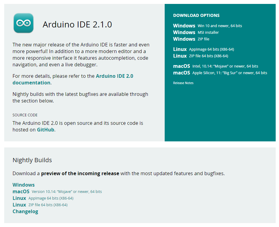 The Arduino IDE can be downloaded online from the Arduino website. It is available for Mac os, Linux, Windows for 32 bit and 64 bit architecture.