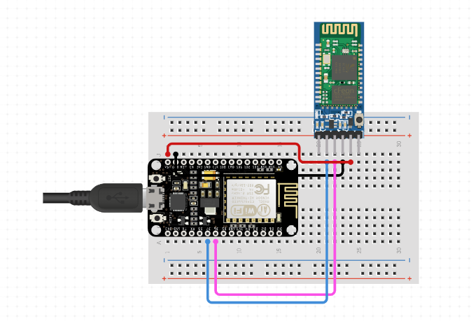Connect the Bluetooth module to the Arduino board by connecting the RX and TX pins of the module to the TX and RX pins of the Arduino, respectively.